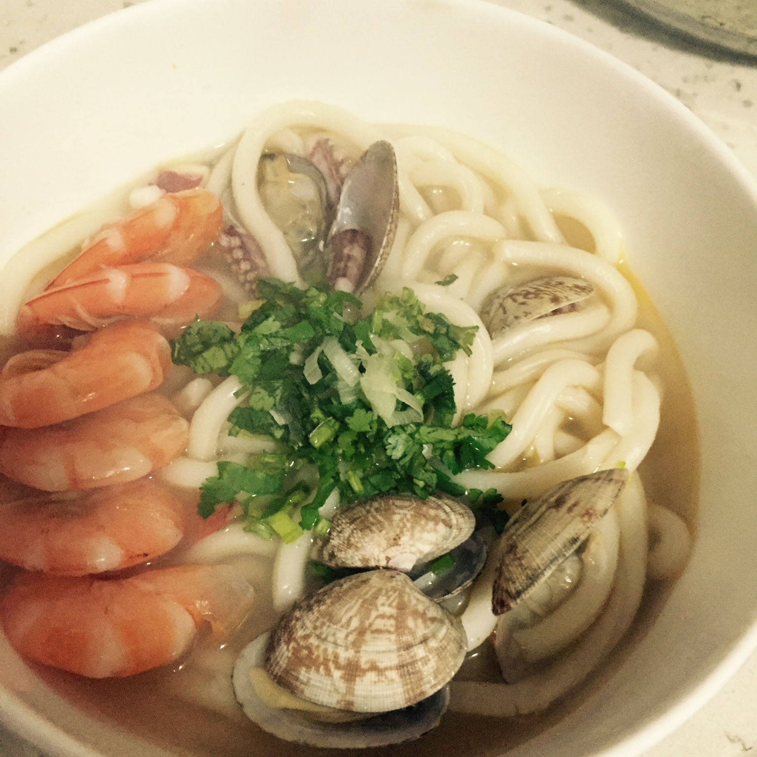 给航宝做的海鲜乌冬面早餐,很成功