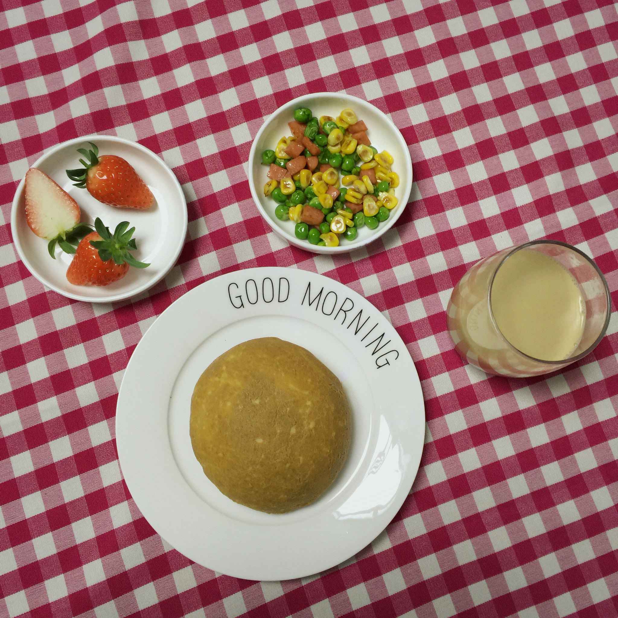 面包➕姜奶茶➕玉米豆➕草莓
