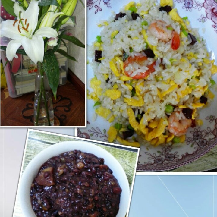 虾仁鸡蛋炒饭和血糯红豆饭
