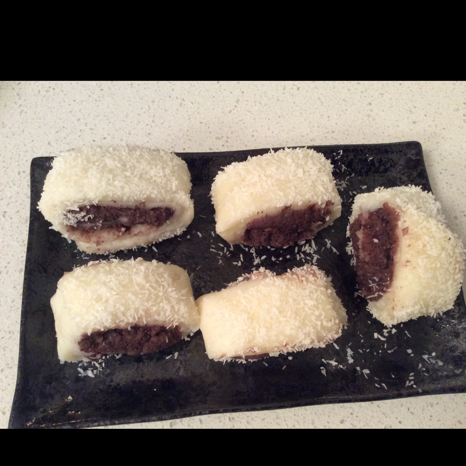 新家微波炉还没买好,用锅子煮的糯米饼,不够Q弹………馅儿放太多了,造型太丑啦!
