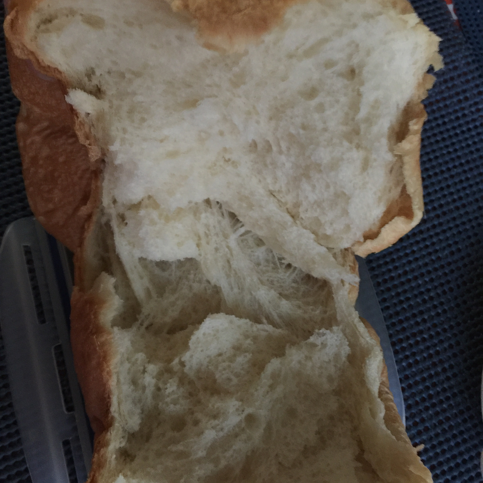 方子很好,用面包机一次发酵做的,非常柔软,拉丝,就是因为没人管它,没有拿出来倒扣放凉,有点回缩。 #早餐•2016年1月...