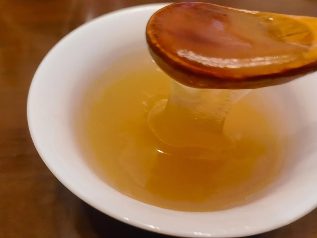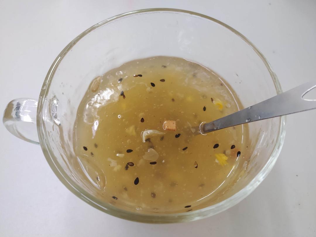 15分钟时候加的桂花糖,刚拿出来的时候水份有点多,直接切开,泡一下少一些了。衬热吃QQ弹弹的不错。