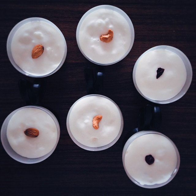 酸奶慕斯,柠檬汁放少了,做了三种口味,事实证明坚果要吃之前再撒,因为会软掉