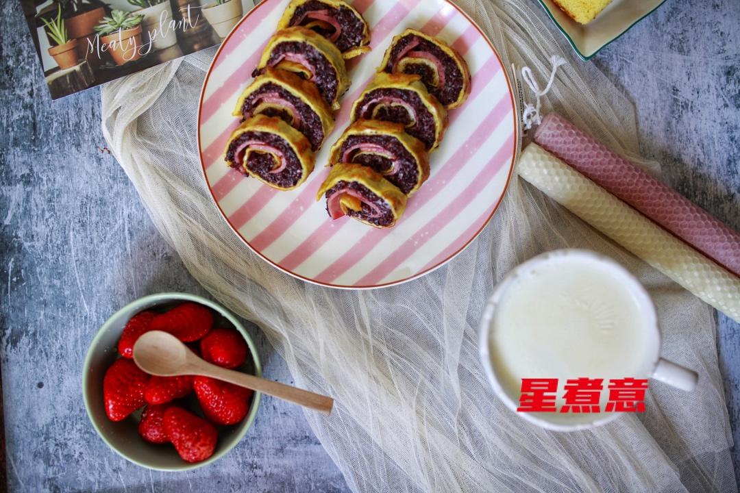 给小朋友做了好吃的黑米蛋卷