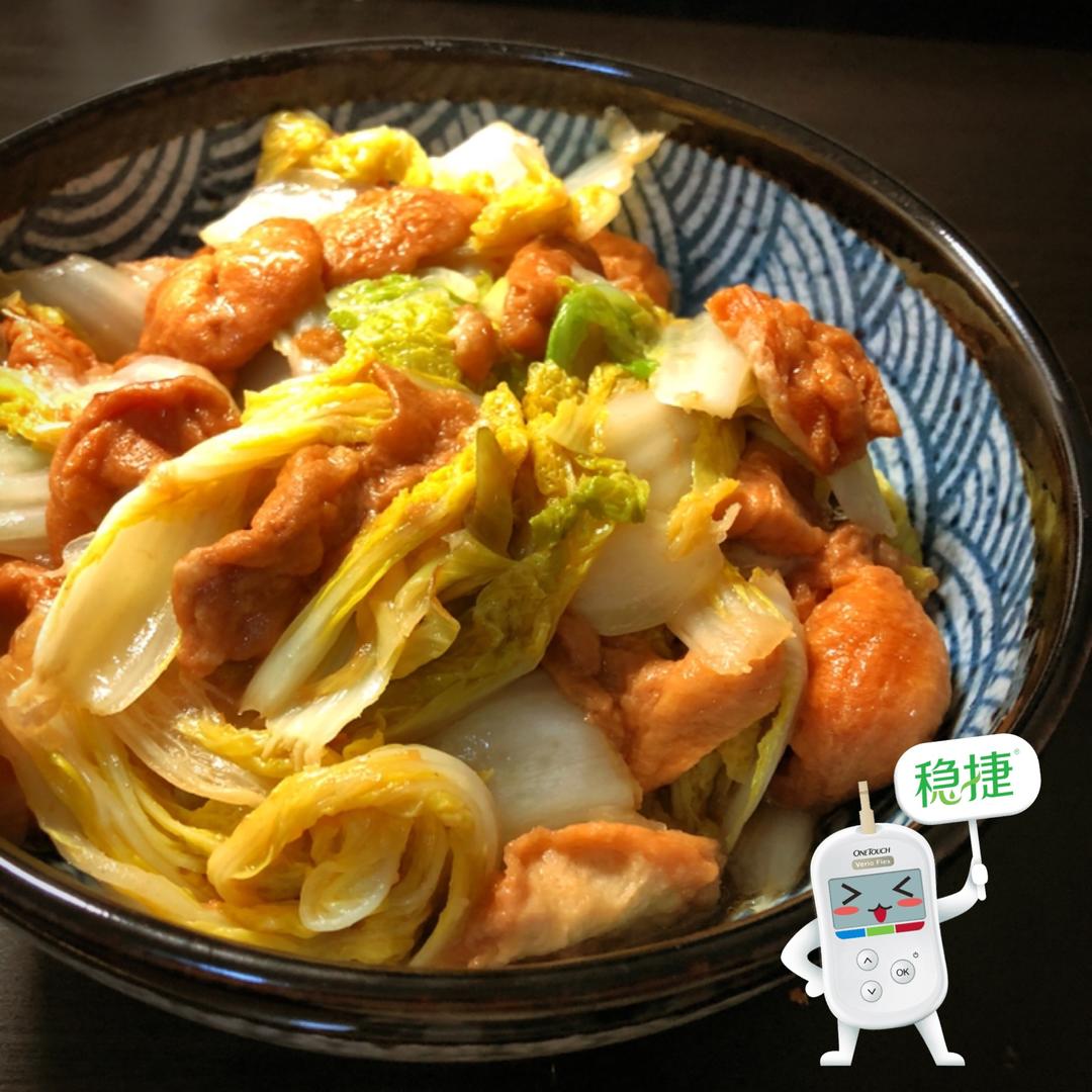 娃娃菜和面筋的组合,纤维素和蛋白质为主,碳水相对不多,升糖指数想必不会太高啦