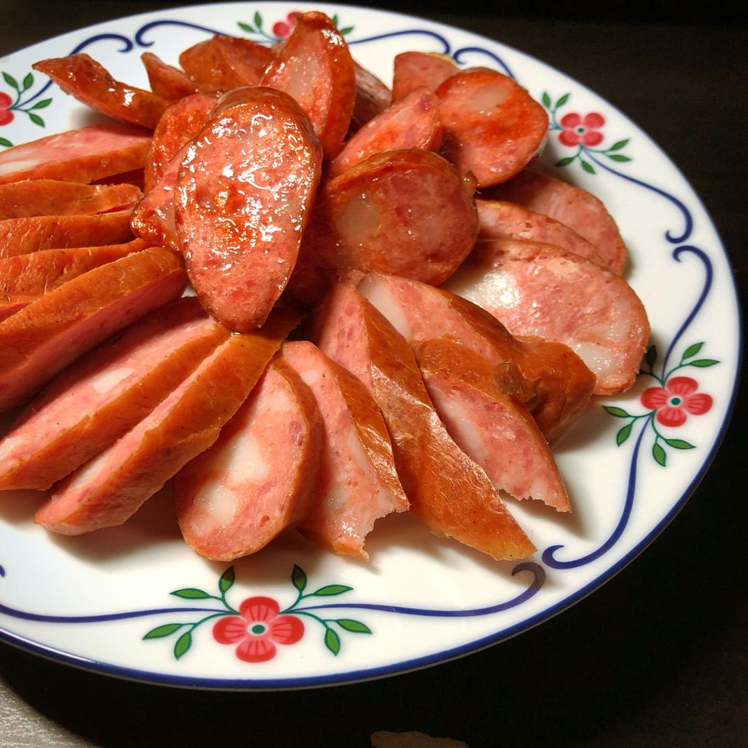 一直切红肠当冷盘吃,突然发现原来煎一下这么好吃呀