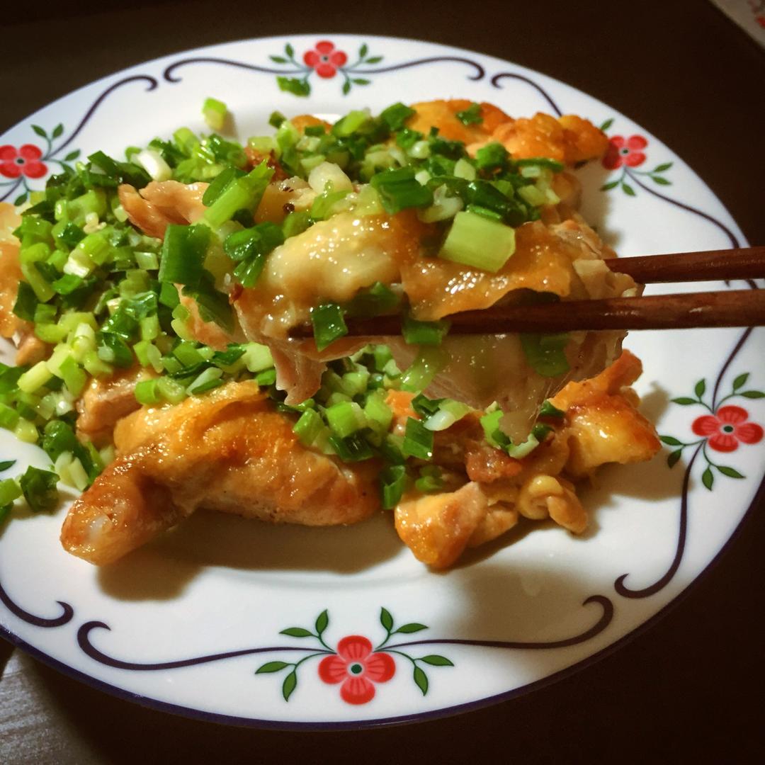 超喜欢这种先煎一下的~crispy鸡皮+葱香四溢的鸡肉~嗯~~
