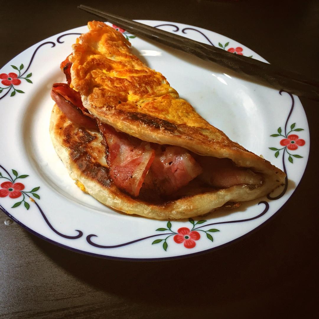 烙饼摊蛋刷甜面酱夹培根~一气呵成~