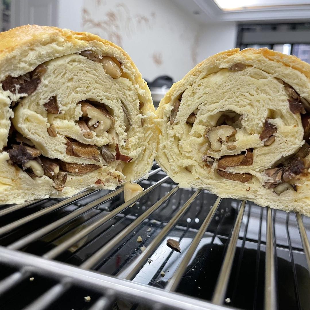 【奶香坚果列巴🥖】多加了一点点黄油,大概28克。河套粉湿度大,牛奶少了一点点125克。哈哈,我都开始用性价比高的河套粉做...