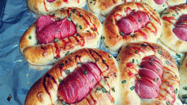 肠仔包出炉了,想把肠全部吃完,孩子放学回家告诉他今天烤的面包圈,就这么愉快的...
