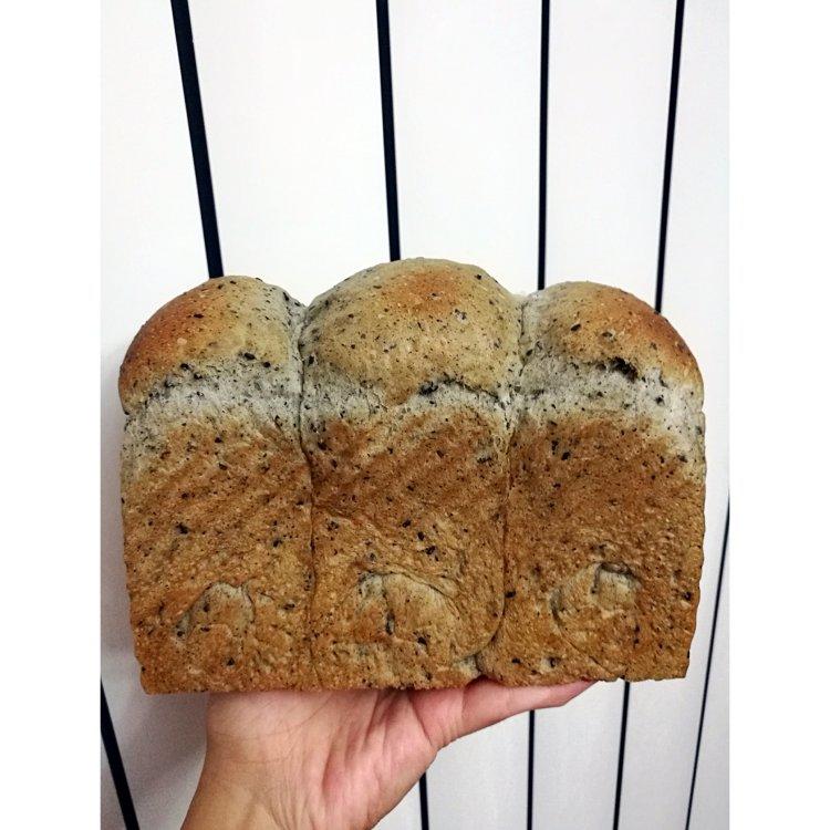 今天这个土司,各种注意,一发看娃还是稍微过了一点,黑芝麻多放了一些,好黑啊😊