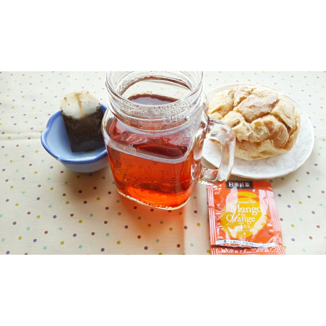 早安!日东的芒果橘子红茶+巧克力泡芙(๑•̀ω•́๑)