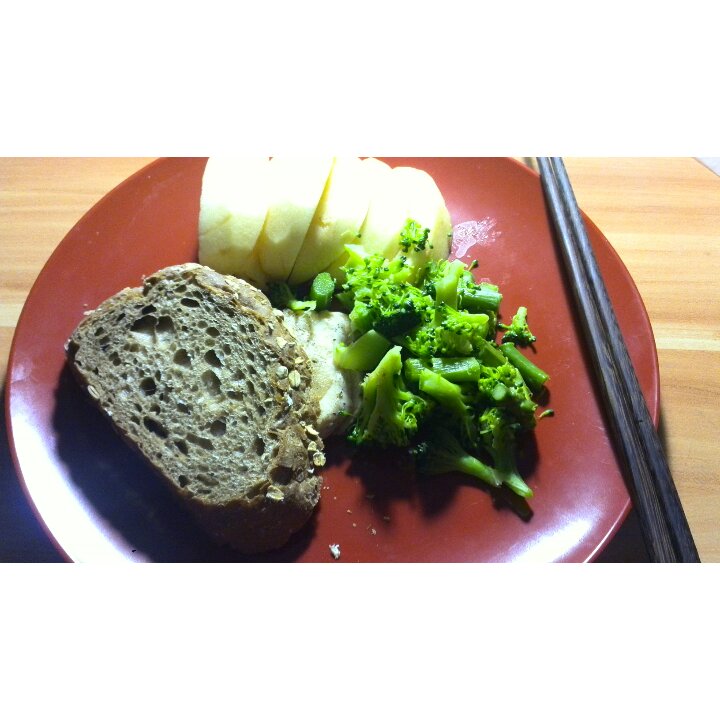 第一次吃芦笋发现还挺好吃的。鸡胸肉用黑胡椒,盐腌制后一点点油煎熟。味道也不错,没有想象的柴...