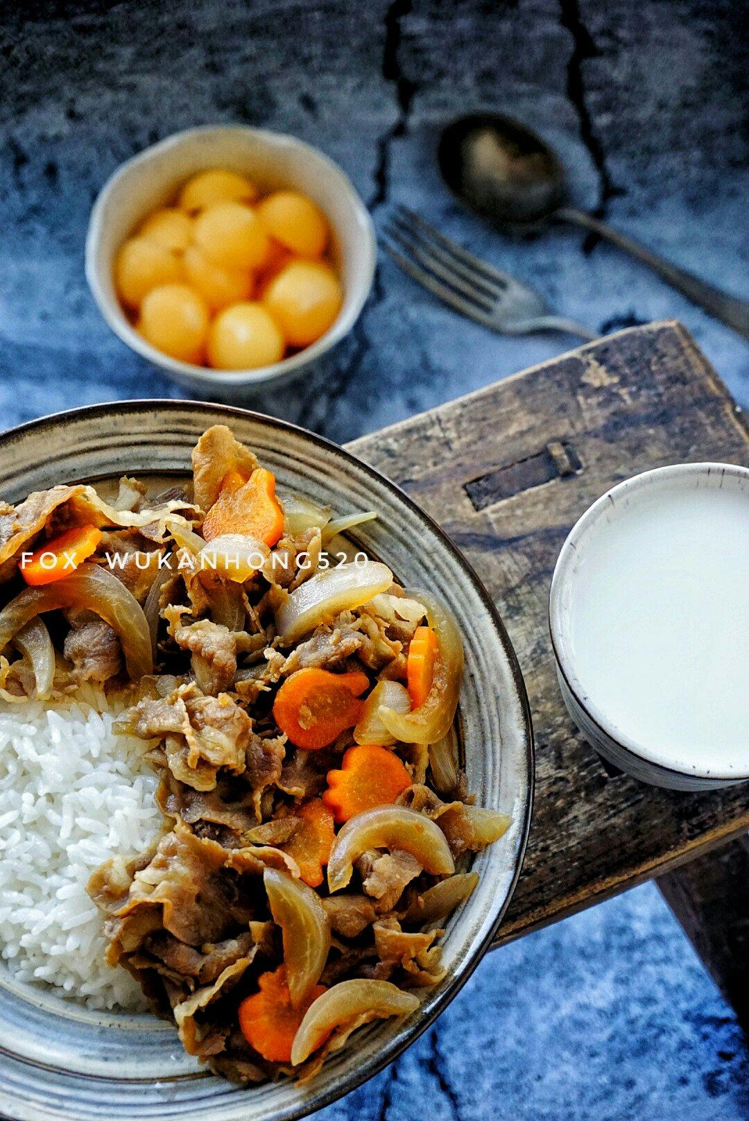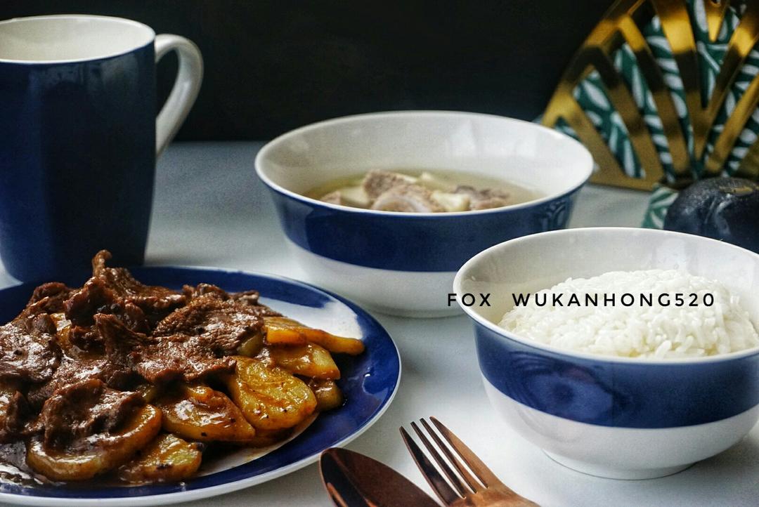 今日早餐:(牛肉炒土豆饭+...