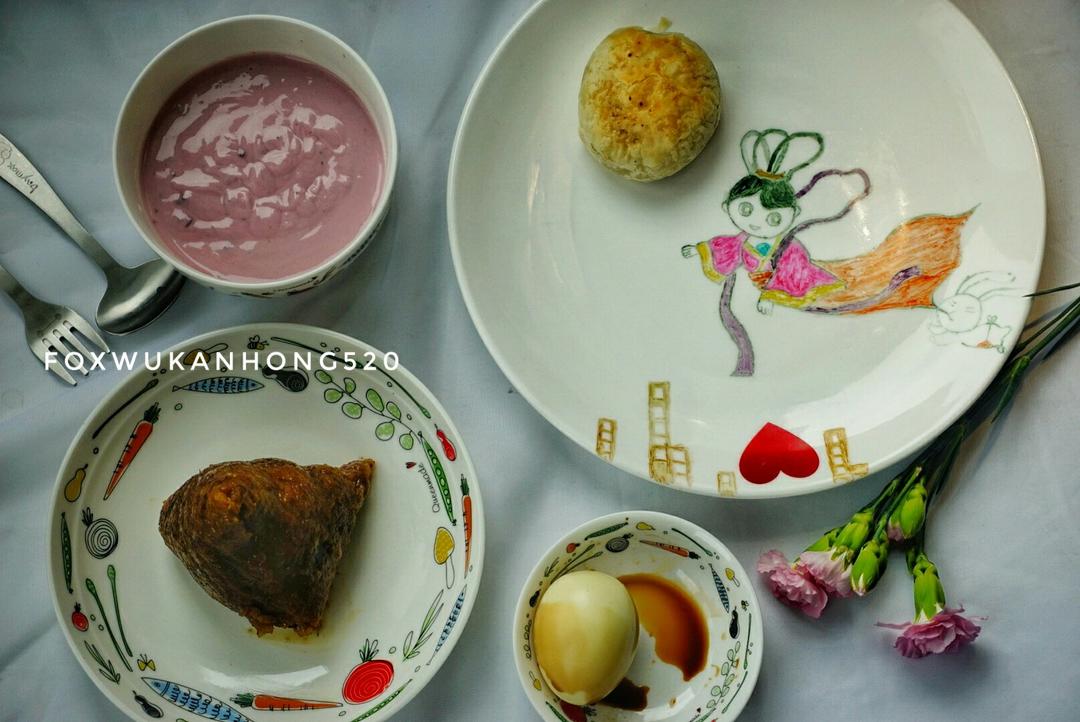 早安一早起来包鲜肉月饼,早餐就上的晚了也简单了好多[捂脸]