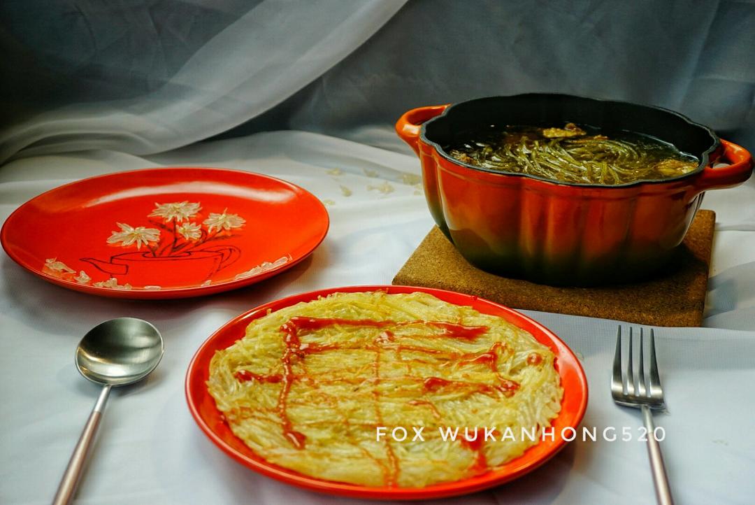 今日早餐:(土豆丝饼+牛肉粉丝...