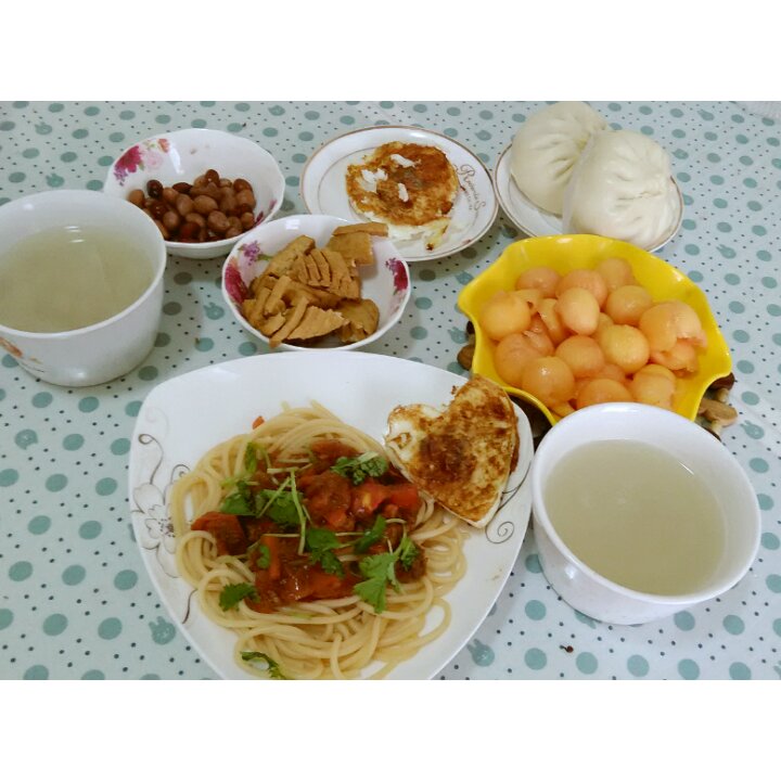 早餐:菌菇汤手擀面,茶叶蛋