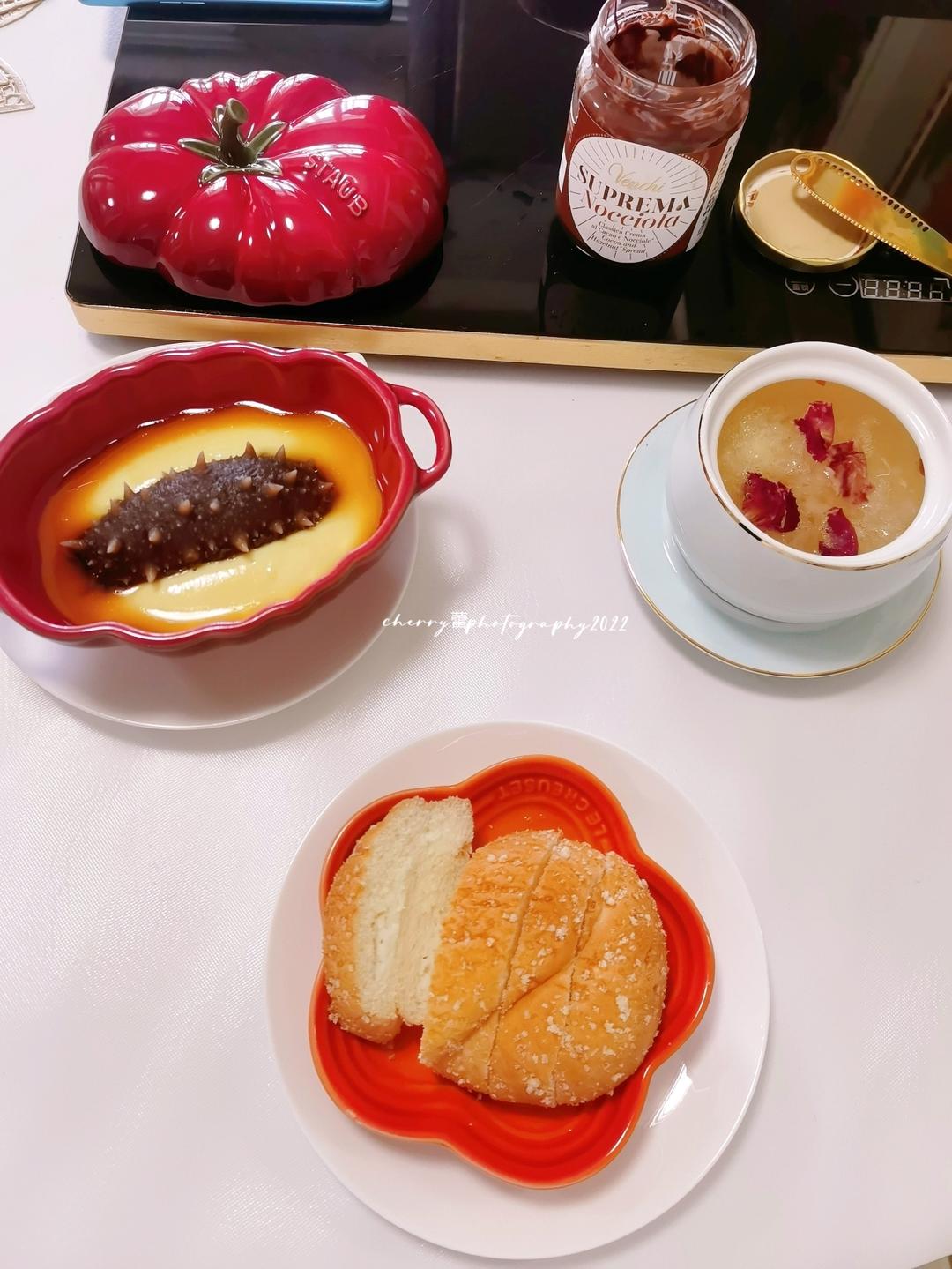 今日打call:海参蒸蛋、酸奶面包