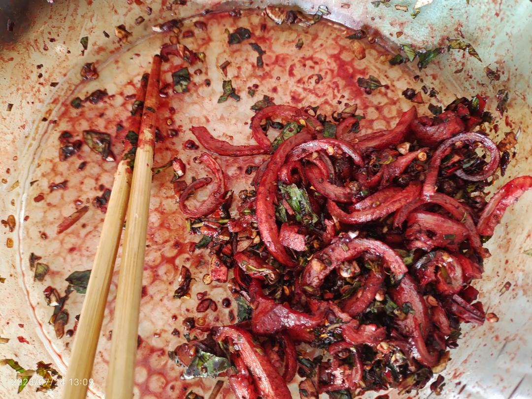 贵州地道凉拌菜:折耳根+苦蒜+糊辣椒面