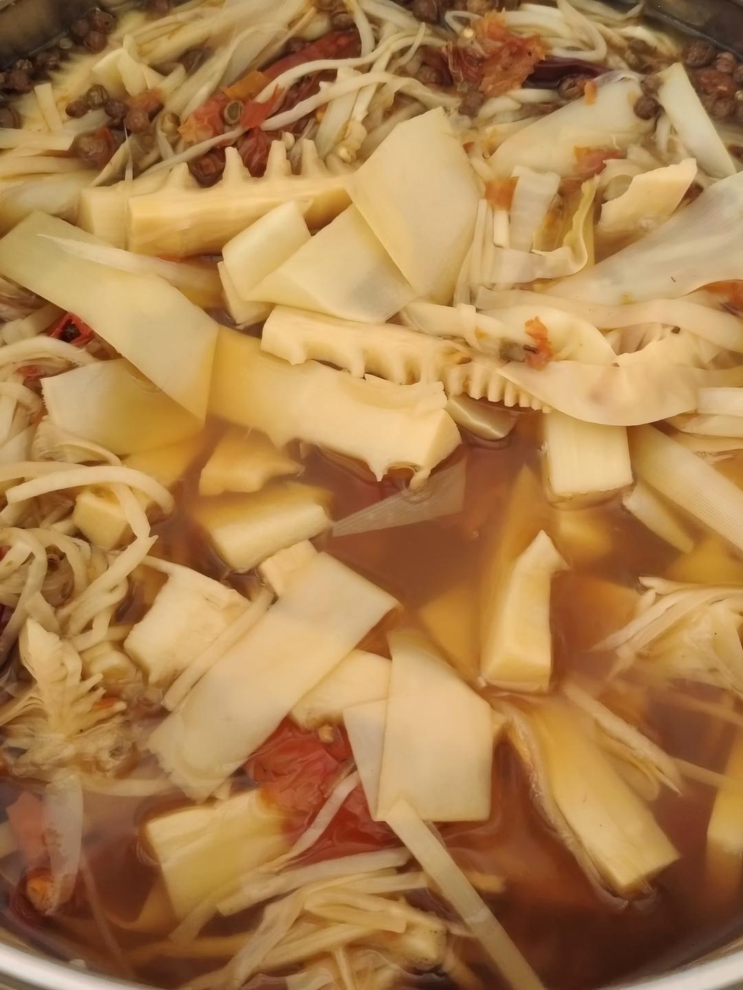 鲜笋+鲜荞头+干辣椒制成