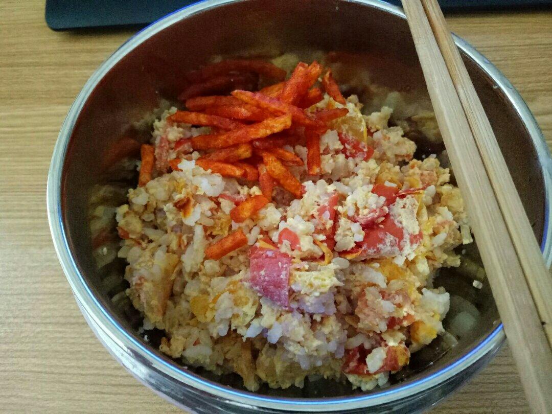 电饭煲做出来的炒饭哦。