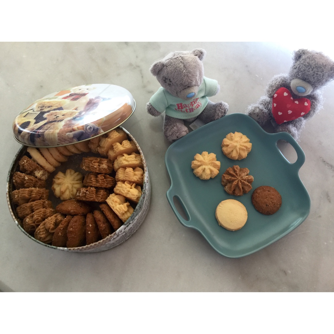 朋友去香港给我带来的小🐻曲奇,入口即化,好吃的不要不要的,小熊公仔也来闻香咯😊