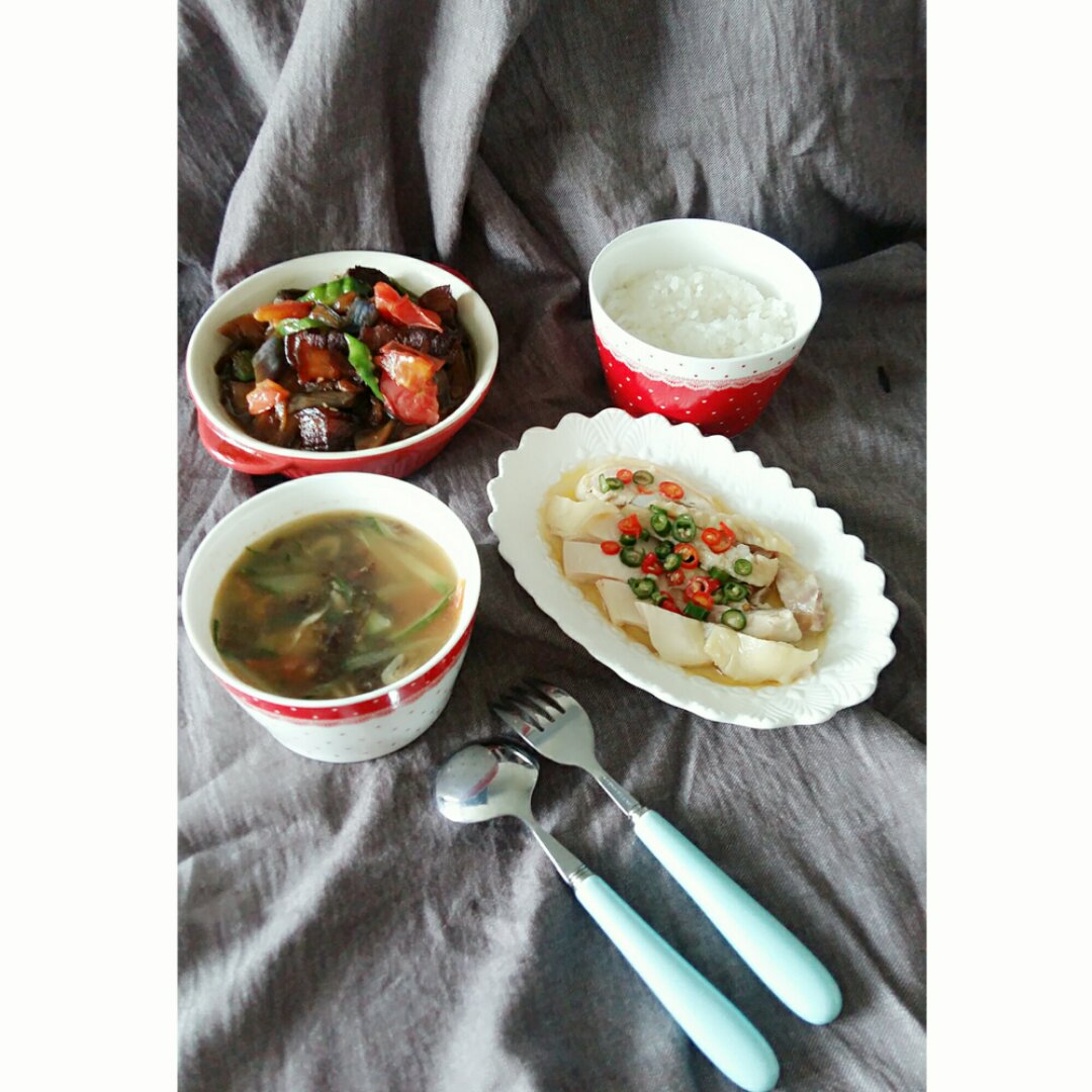 儿子喜欢吃的麻油鸡,肉烧茄子就吃一点点,就是这么怪!
