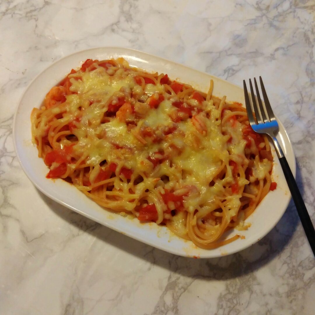 番茄芝士焗意粉。
