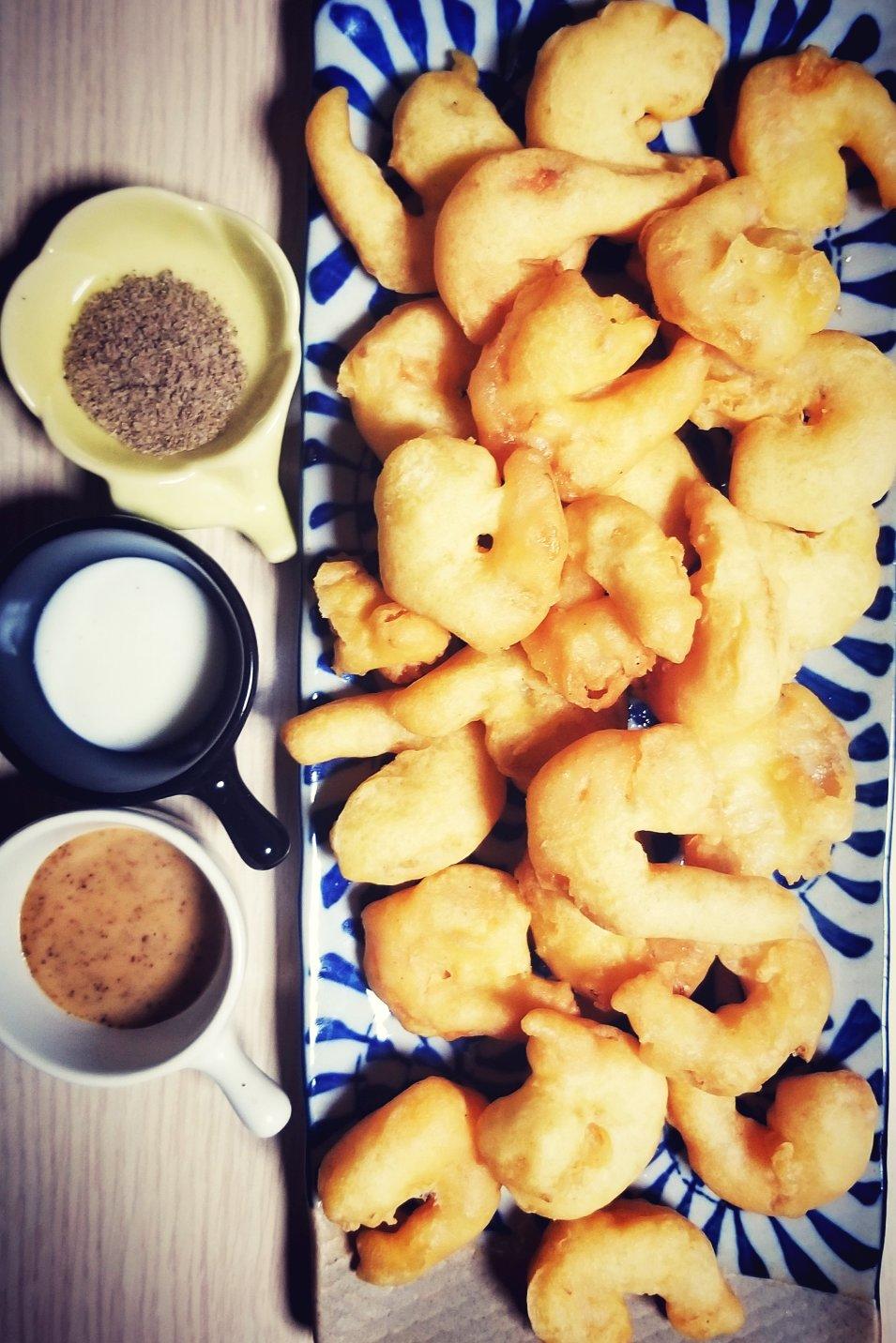 外脆内软,不比饭店的差,口味咸鲜,准备了三种蘸料,椒盐&柠檬沙拉酱&a...