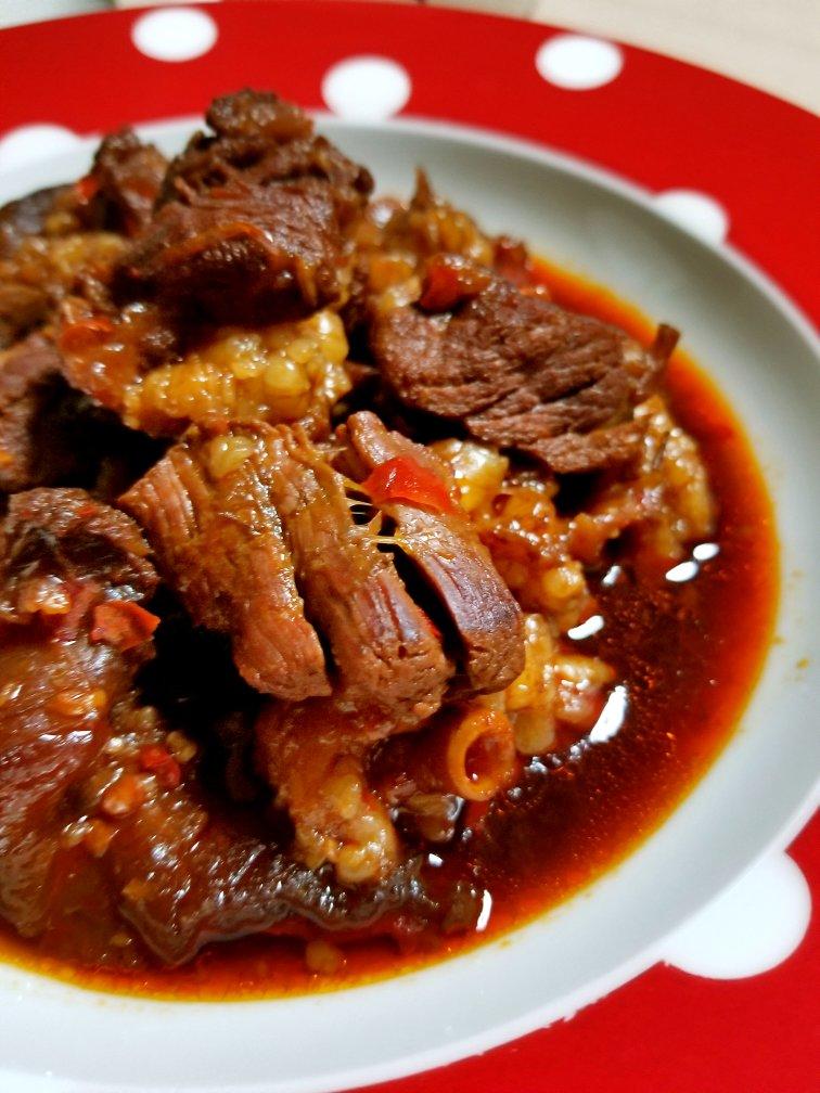 加入炖了5小时的牛棒骨汤和十几味调料,炖出满屋飘香的牛肉,直接用过滤后的炖汤浇...