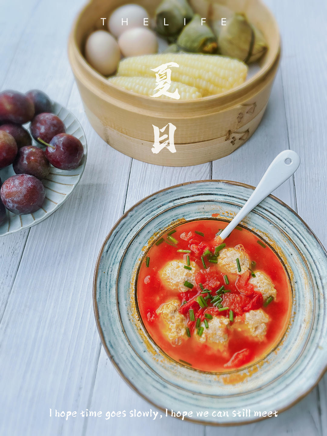 早餐分享:番茄鸡肉丸子汤+蒸玉米🌽粽子鸡蛋🥚 早起去人和赶场你会收获满满,爷爷婆婆自家种的番茄🍅,玉...