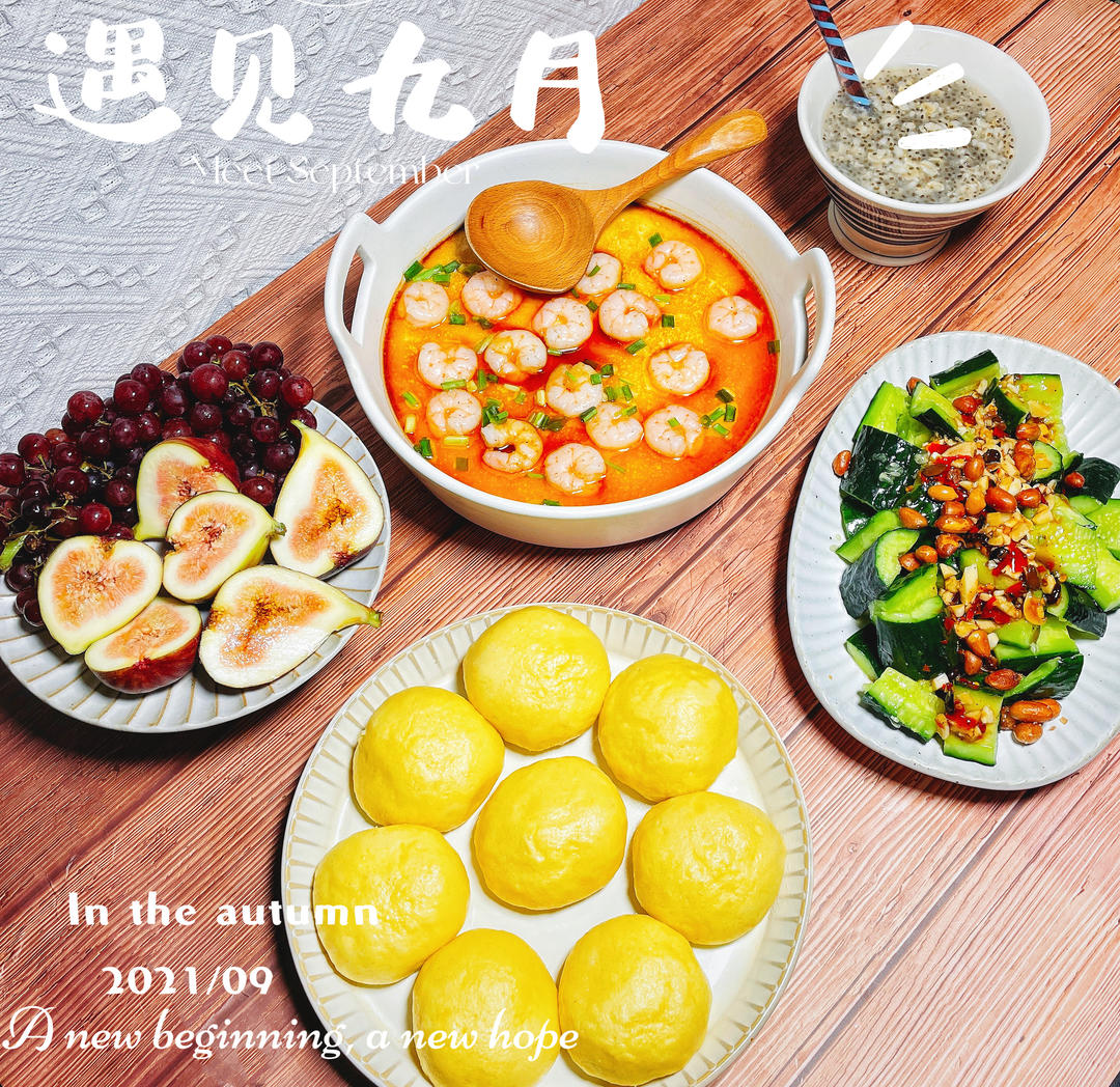 高中生早餐:蒸虾仁鸡蛋羹✝️蒸玉米窝窝头✝️凉拌蒜泥黄瓜🥒✝️奇亚籽燕麦粥✝️水果