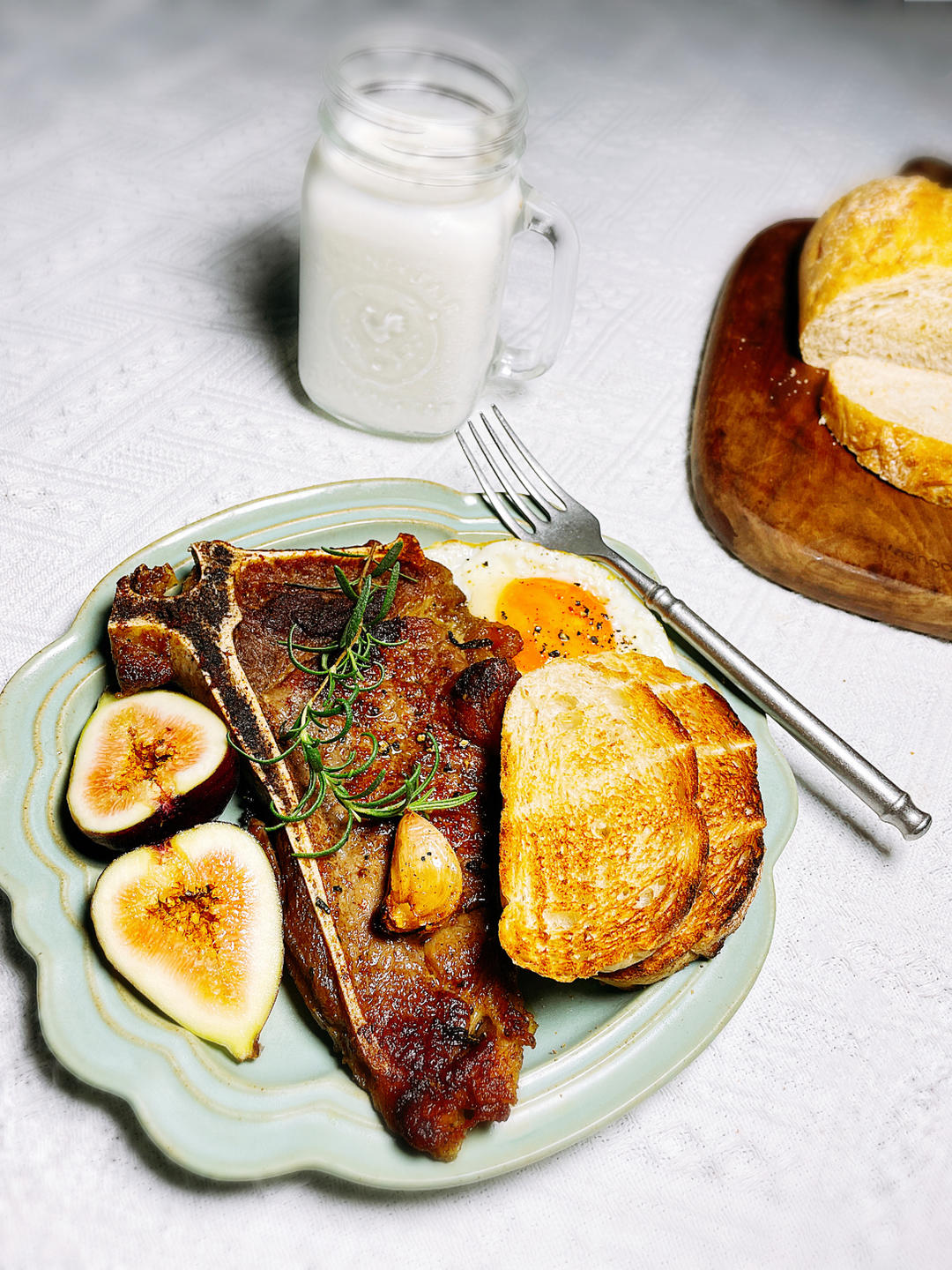 高中生早餐:煎牛排、鸡蛋✝️牛奶面包🍞无花果