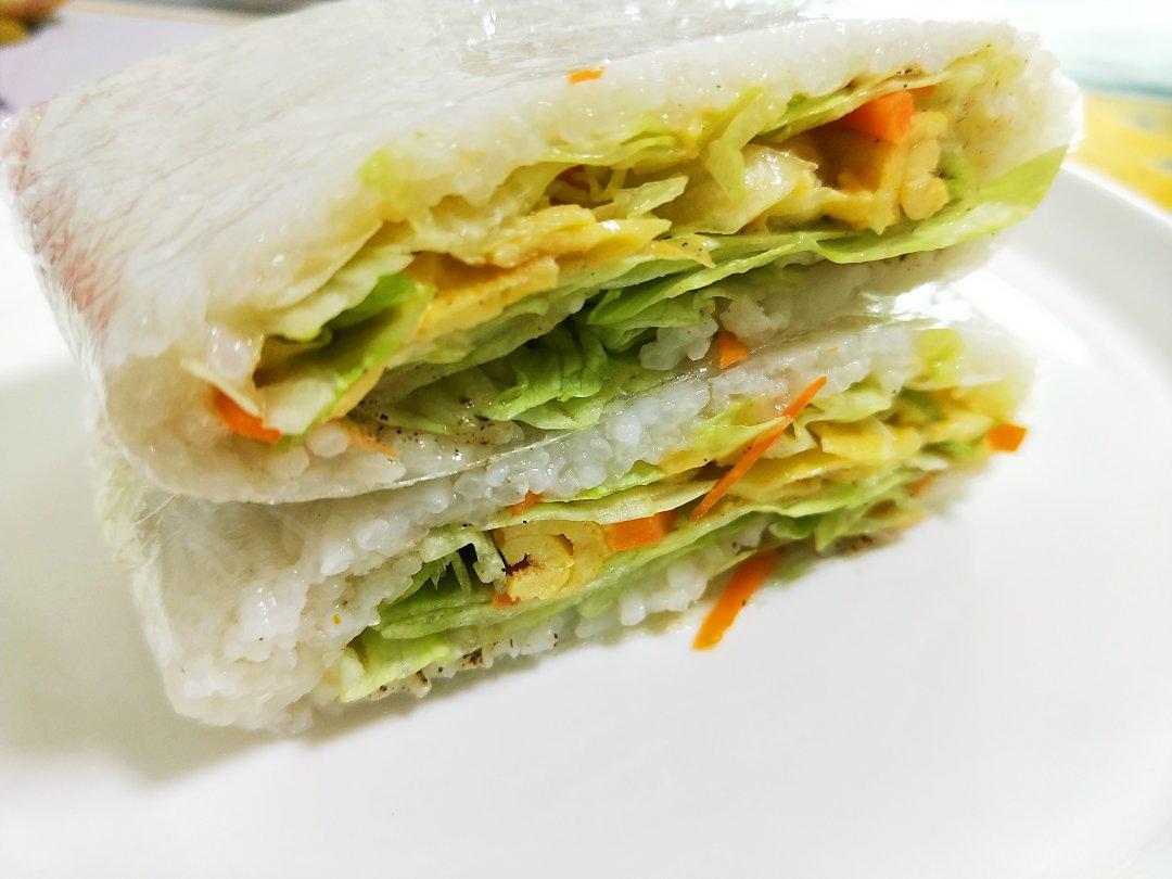 一个面包,做了三人份量的豪华版三明治😄