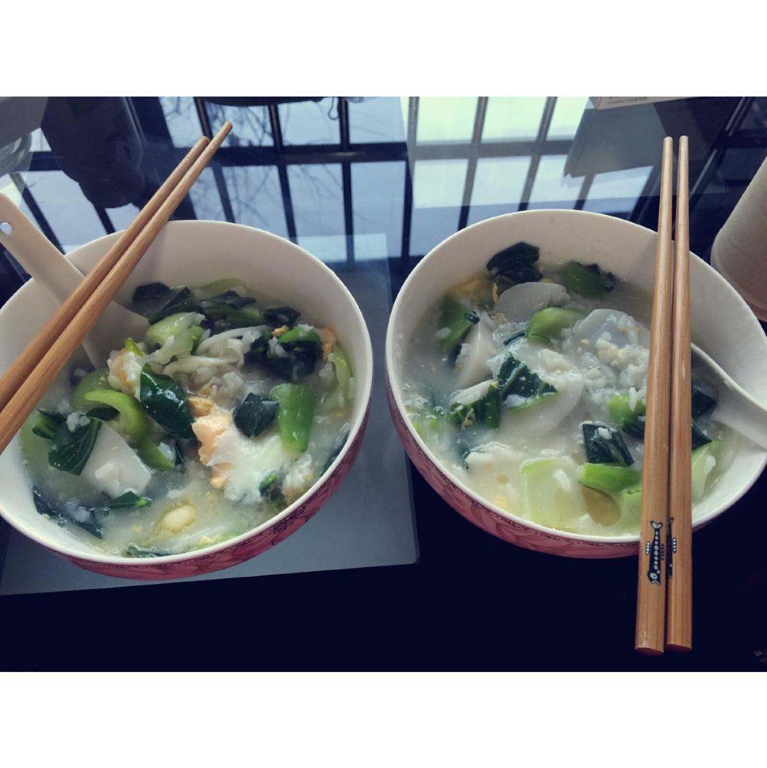 青菜泡饭年糕+鸡蛋^_^