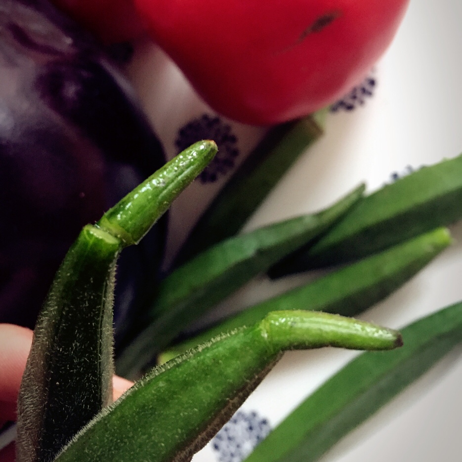 秋葵有时会买到老筋又硬的,其实选择的时候,掐一下尾部,折断的就是嫩的。此方法屡试不爽。 #早餐•2016年...