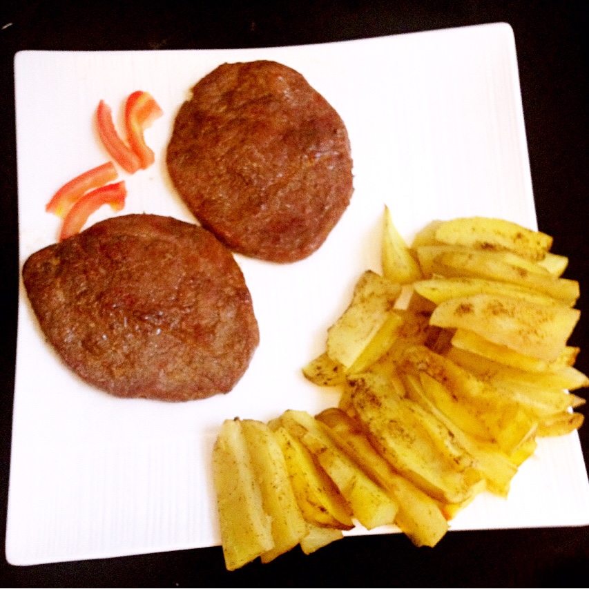 薯角搭配牛排,儿子的最爱
