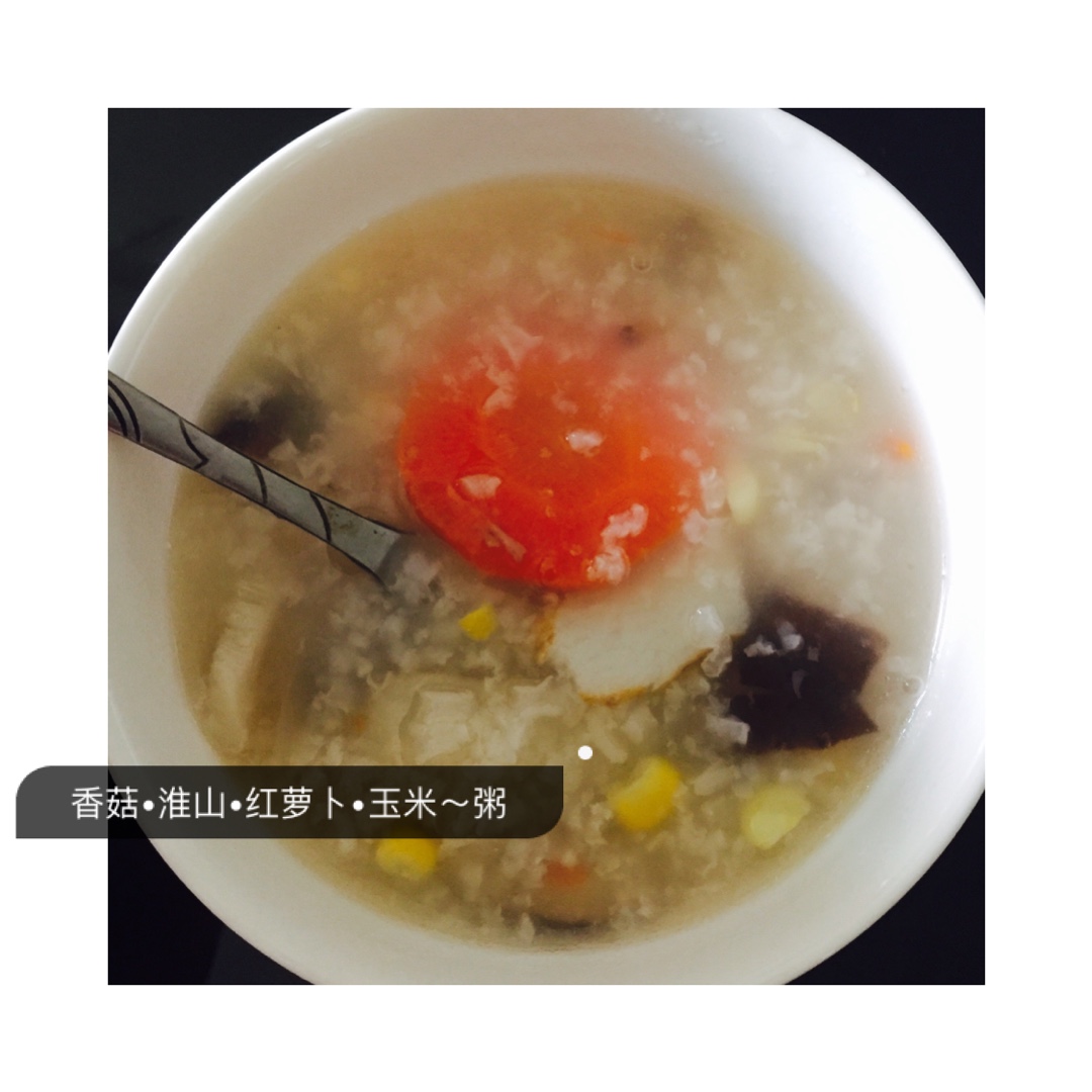 感冒了,不想吃饭没胃口,然后就来个香菇~淮山~红萝卜~玉米粥 棒棒哒🌝 一下吃了3碗