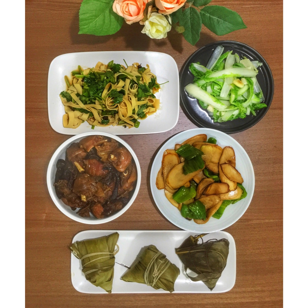 想说今天才吃上了粽子,妈妈和婆婆拿来的,有买的也有自己包的,肉粽子爱好者吃了口白粽,觉得也不错嘛~ #午餐•2016年6...
