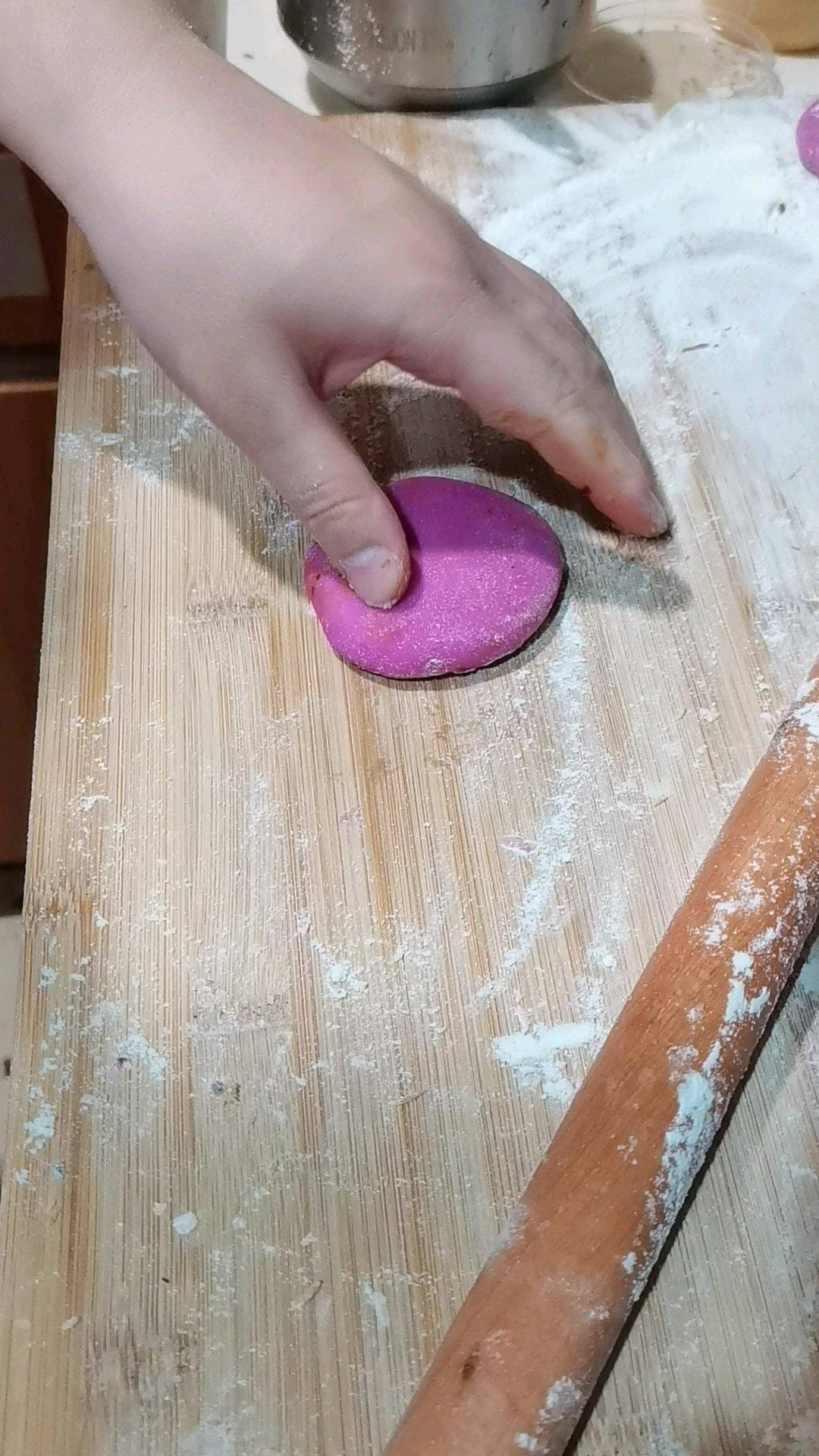 看晨哥做枣花酥😍红枣蒸制后捣碎加腰果做馅😜火龙果榨汁上色😝