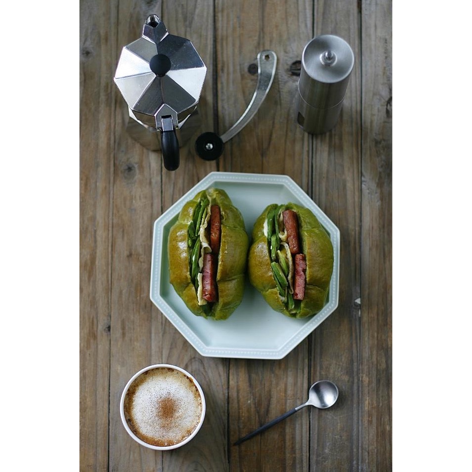 抹茶黄油小卷。不用做三文治,就这样吃就很好啦~~其实做的不算很理想,如果隔夜不皱就更完美了。 #午餐•2016年6月6日...