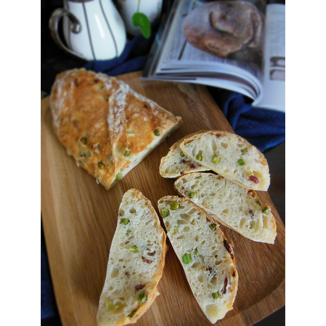 豌豆腊肉法式面包。小朋友问那个玉米海苔面包还有吗?早没了!连玉米、海苔...