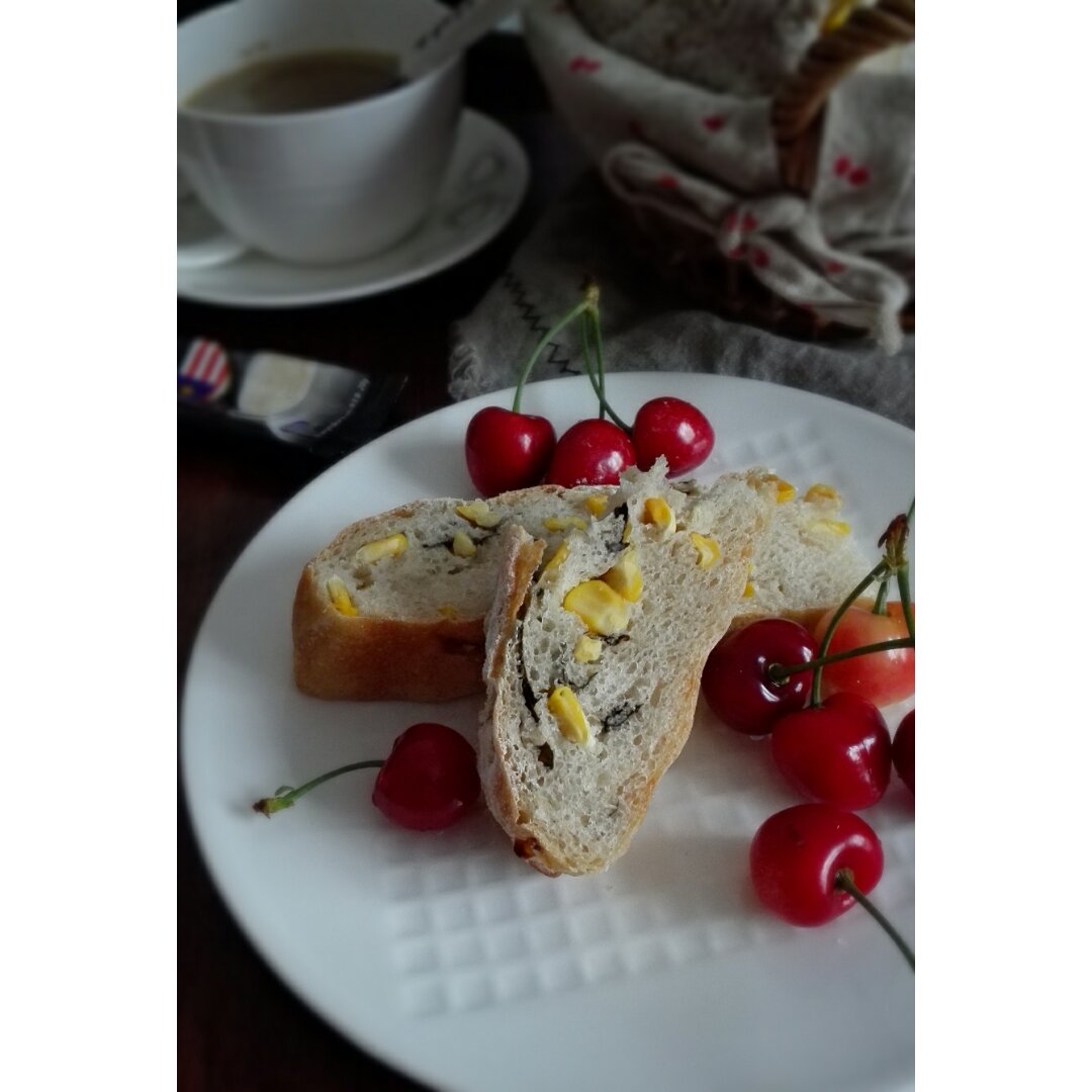 玉米海苔黑麦面包,咸口无油的面包,加了蒸熟的玉米粒和即食韩式炭烧海苔,...