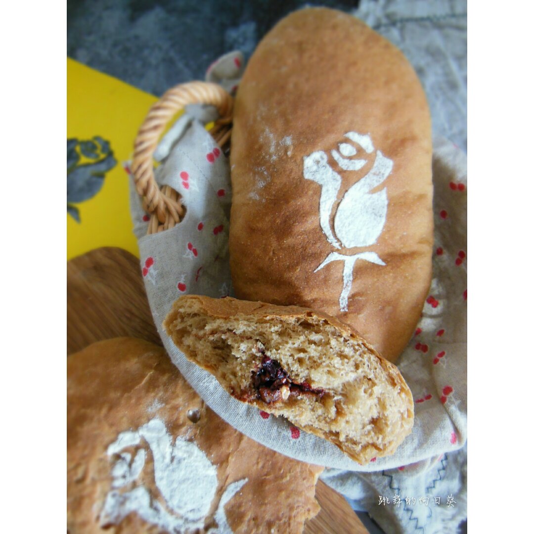 黑麦蓝莓干核桃软欧。用的@