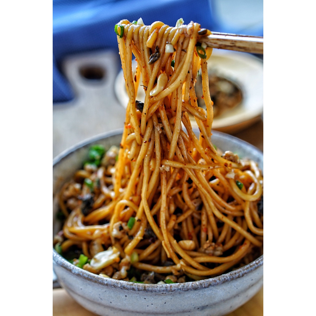 宜宾燃面,完全就是芽菜花生米和肉臊子的完美结合,我每次都会喊,老板,多加点芽菜!