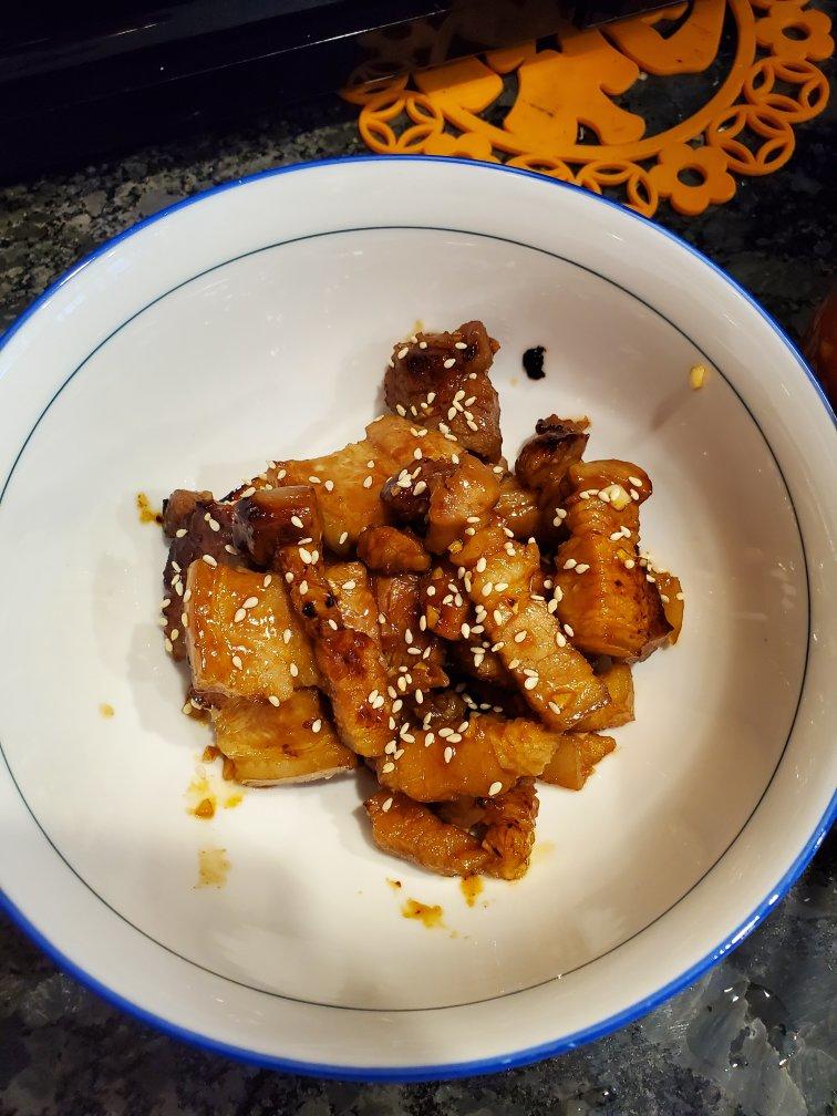 腌制了15分钟后用平底锅考了一下,真的很好吃。我不太能吃辣所以辣酱只放了一勺,但是味道还是很好吃。腌制的时候忘记放芝麻了...