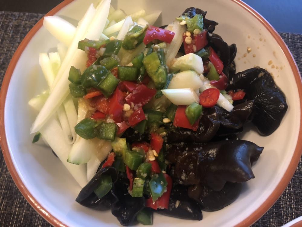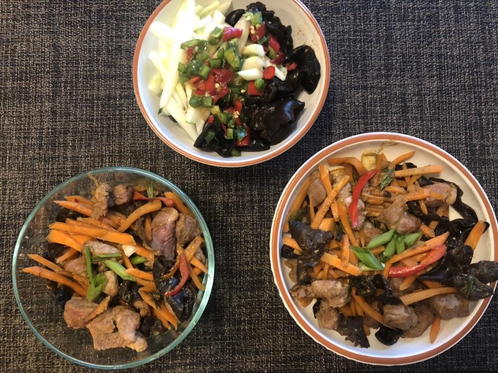 9/27Fri晚餐:五香酱版鱼香肉丝、傣味儿木耳黄瓜丝