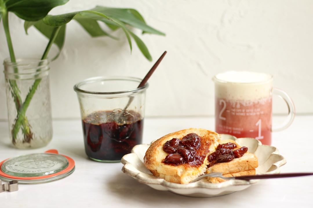 火候大了些,烤了25分钟,成品颜色有点深啦,吃着有淡淡的焦糖味😂😂 500g草莓放了200g糖,糖量像做果酱那样放的,...