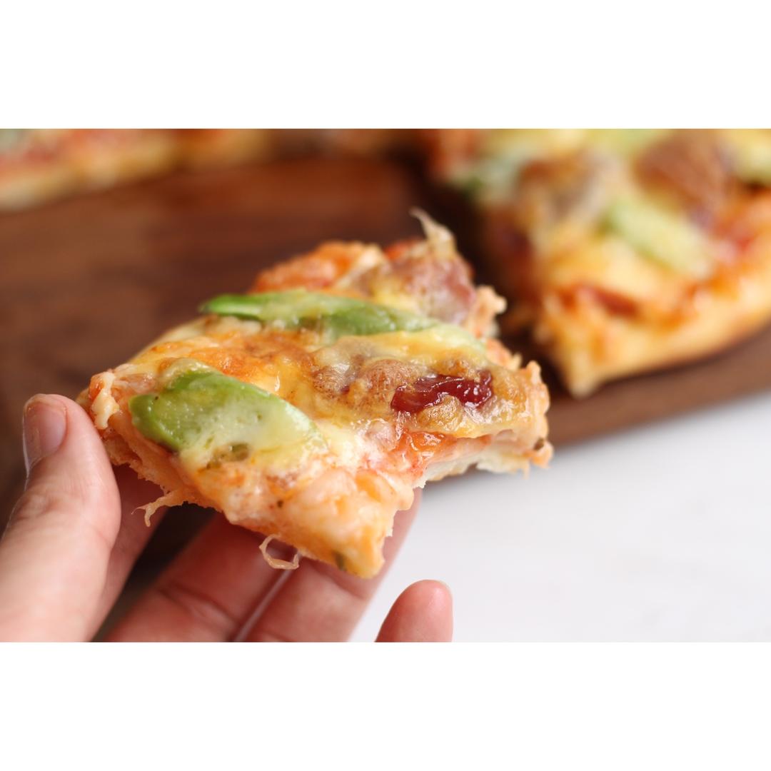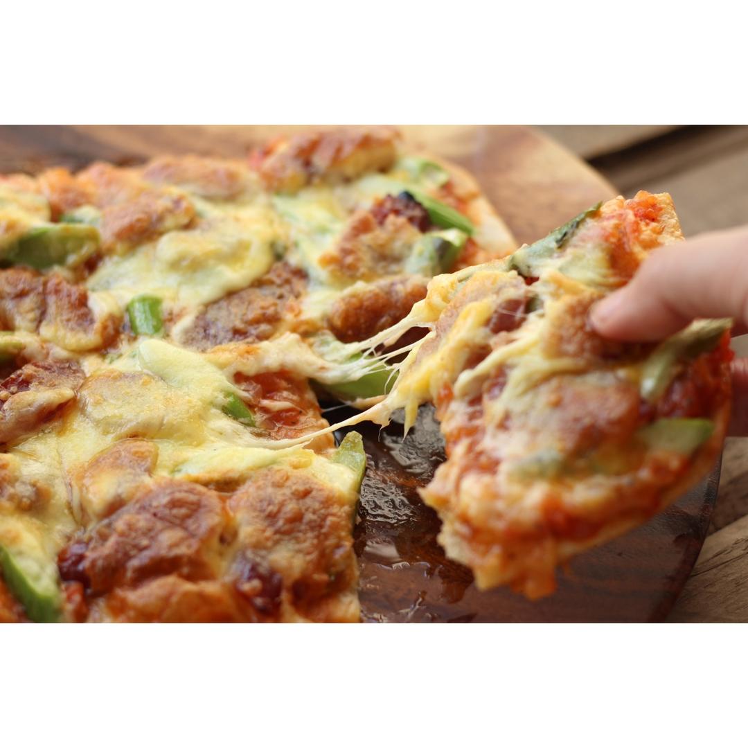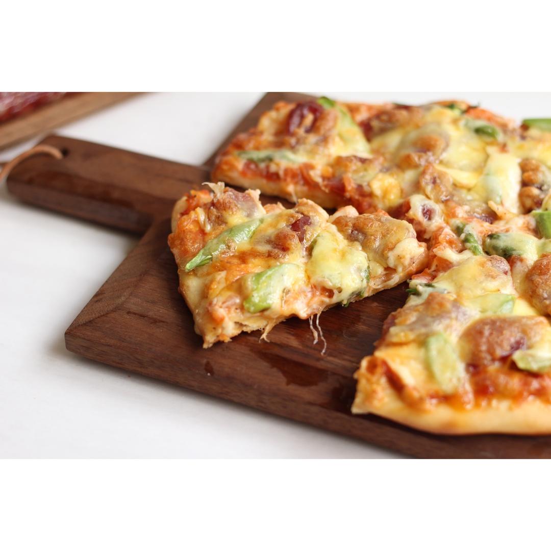 底薄馅料多,腊肠和芦笋也都好搭,配上酸酸甜甜的番茄披萨酱,一本满足(˶‾᷄ ⁻̫ ‾᷅˵) #午餐•2017年3月30日...