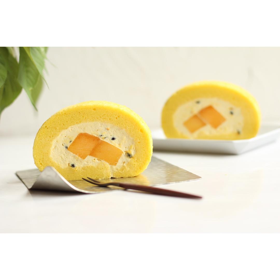 椰香百香果芒果蛋糕卷。凑齐三种热带元素感的蛋糕,卷卷是椰子味,卷百香果奶油,最后加了一大坨芒果果肉。